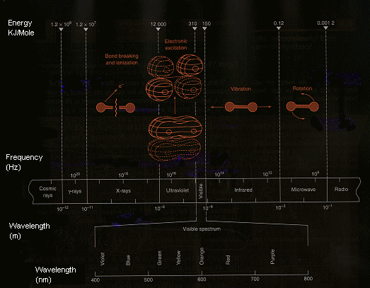 Effects of various electromagnetic wavelengths on molecules.