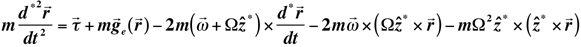 Armed with the knowledge of fictitious forces and their mathematical formalisms, we are ready to investigate the Foucault pendulum. To begin our analysis, a little introduction is required. The pendulum in question consist of a long rod and fairly massive bob. The ones that demonstrate the desired effect most suitably are equipped with a device to give them a small consistent push, to compensate for the attrition of energy due to friction. Once set in motion with a regular period, the pendulum's plane of swing will precess. This is usually not apparent unless viewed with time lapse photography or by taking measurements over the course of a day, as the rate of precession is related to latitude, but limited to the rate of rotation of the Earth. Seen from the frame of reference of the earthly observer, an unkown force is at work, the source of which cannot be found. [1], [2]
