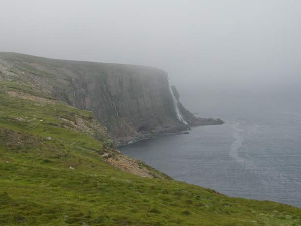 Water fall near spot along road where we saw eider ducks in a small inlet below cliffs.