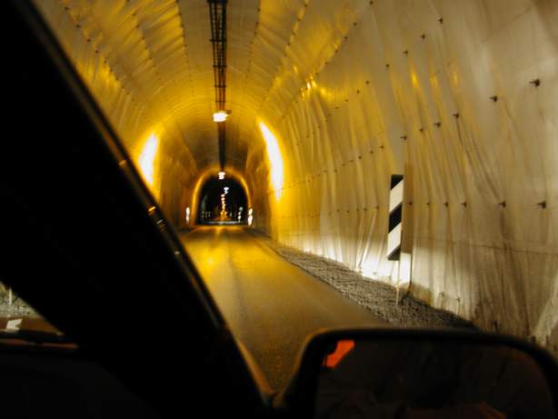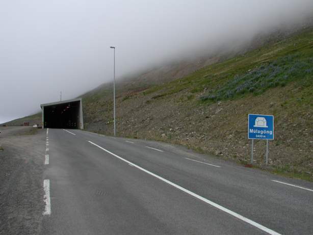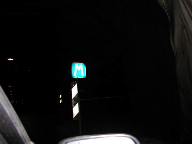 3.4 Kilometer one lane tunnel leading to Olafjordur. Pretty interesting since the people heading from Akureyri to Olafsfjordur had to pull aside in the special areas marked 'M' every ~0.2 km (see photo below). So on our way into town we pulled over every time we saw headlights. When you are heading to Akureyri from Olafjordur then you have right of way and do not have to stop.