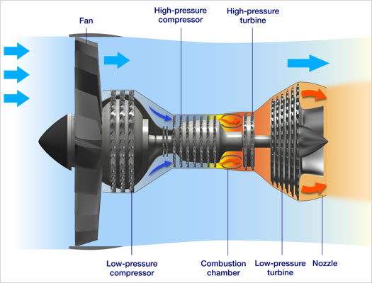 All jet engines have five basic components: Fan, Compressor, Combustor, Turbine and Nozzle